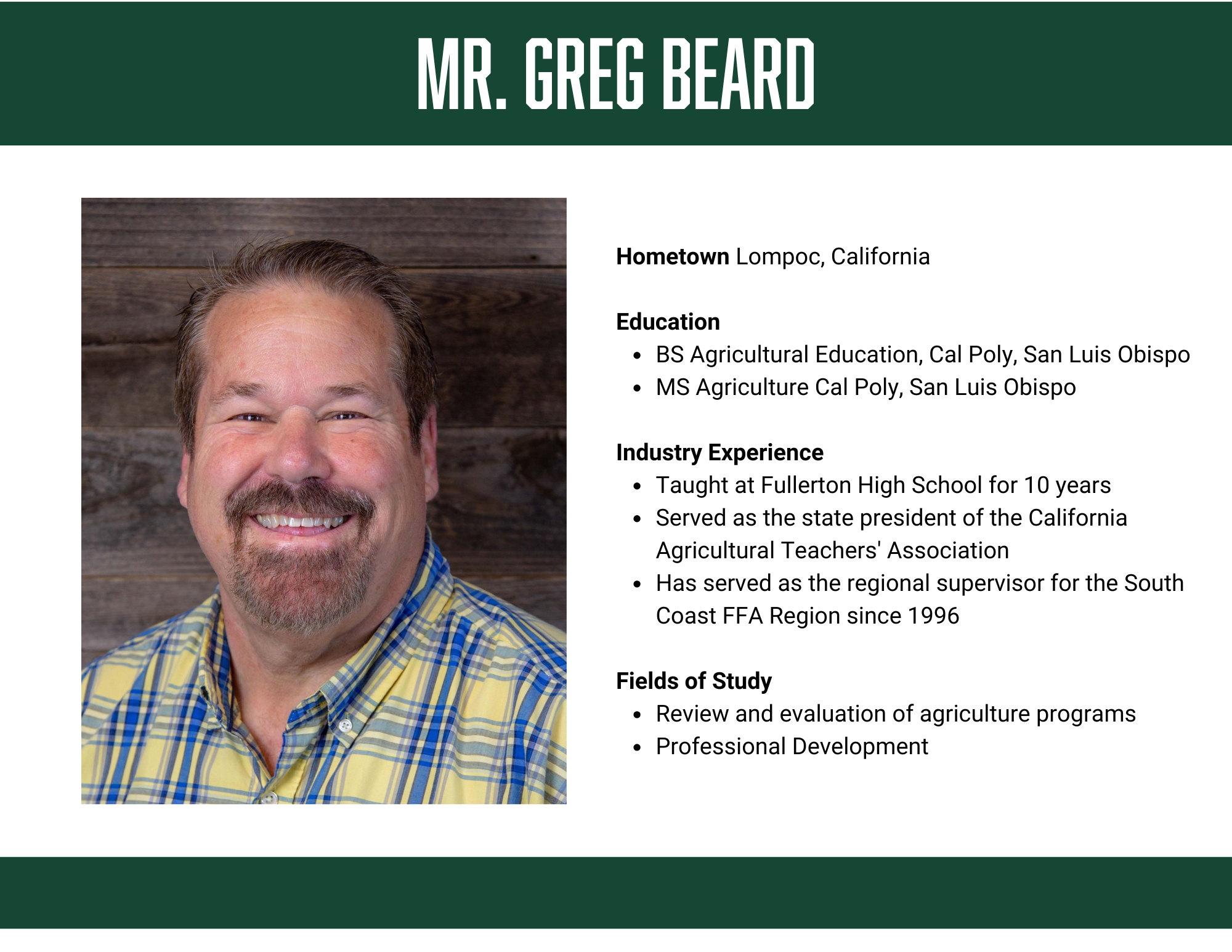 Greg Beard | 756-2402 | gbeard@calpoly.edu | 10-247 |