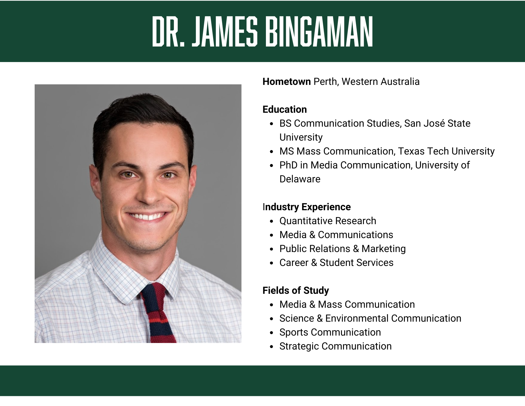 James Bingaman, Ph.D. | 756-0662 | bingaman@calpoly.edu | 10-240 |