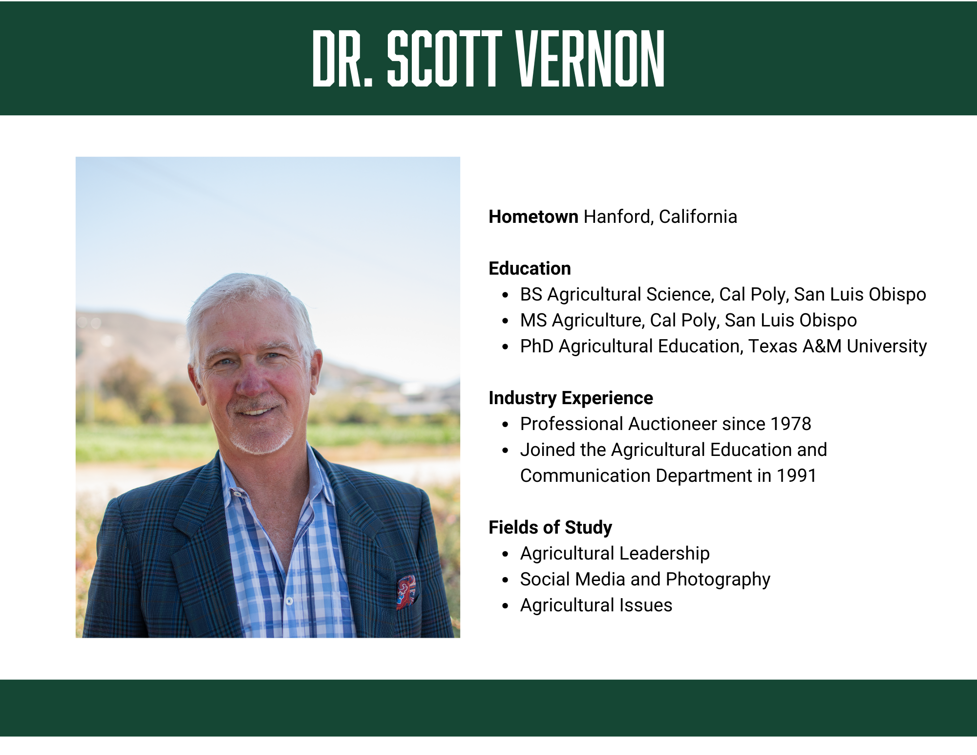 Scott Vernon, Ph.D. | 756-2392 | svernon@calpoly.edu | 10-233 |